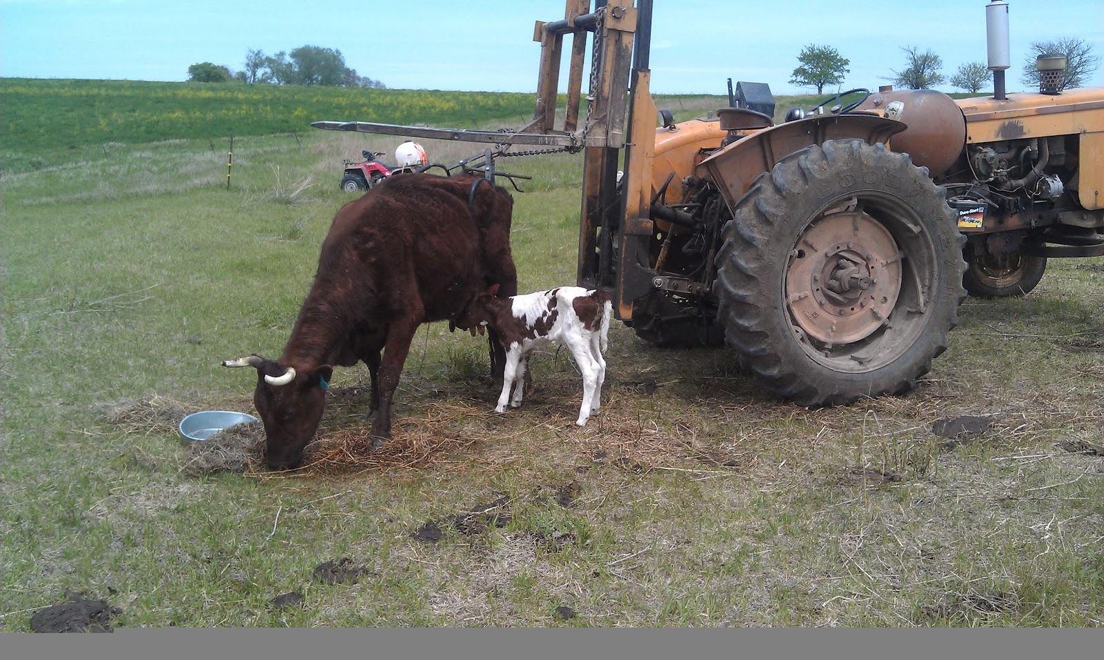 I suppose I should explain the trees. I signed up for several NRCS programs this year. One of which was a windbreak/shelterbelt renovation, which entailed planting 350 trees around the farmyard. I was very excited because I worked with them to create an "edible landscape" so we have pecans, walnuts, plums, cranberries, apricots and many more. All of which are edible by animals and/or humans. The time came and I picked up the trees and the tree planter only to come home and be completely overwhelmed. I decided I wasn't sure if their design was going to be too much of a hindrance on farming activities. It wasn't until I was out there trying to get ready that I realized how many things would need to be moved (trailers, piles of junk, piles of tree limbs, etc) and other trees cut down. Plus, that's where I was grazing the sheep and the bulls. Anyway, long story short, I abandoned the project and was going to cut my losses on the 350 trees I had already paid for. Monday rolled around and I told my NRCS guy the situation. He hopped in his truck and came right out. We surveyed the landscape and came up with a new plan that would alleviate most of my concerns, get the trees in the ground and ensure that I didn't lose my money on the trees. So, here I am a week later and hoping to get the trees in the ground today. Hopefully, it's not too wet...